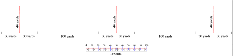 demi-gorges of the redans. In Vauban's method the demi-gorges are 30 yards