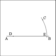 arc a bit farther from Line AB than the distance between Line AB and Point