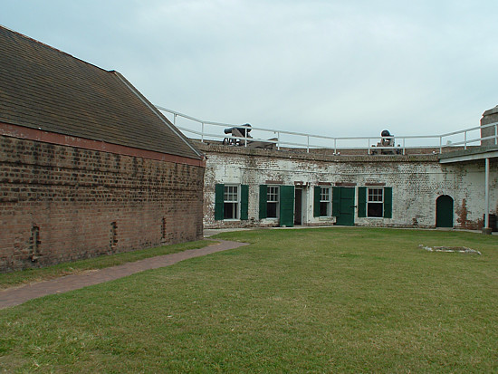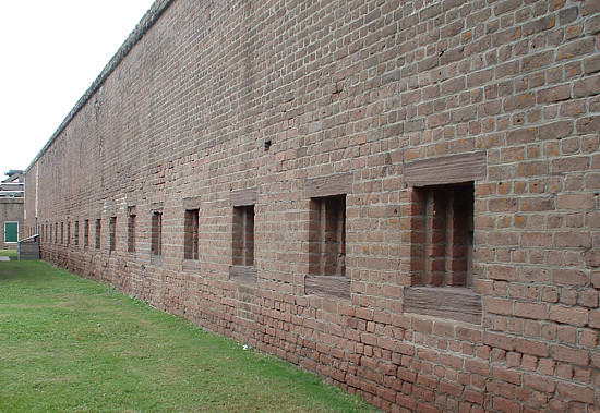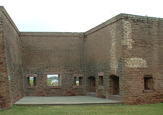 14 heavy sea coast guns. The masonry enclosure create a double wall effect;