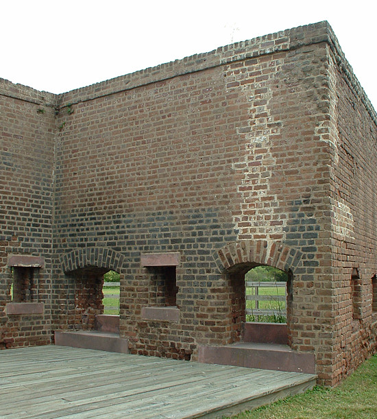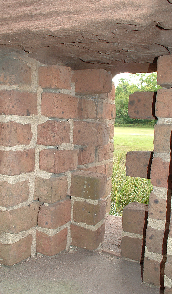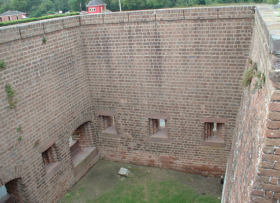 the battery's casemates. Concentric arched vaulting of the cramped casemates